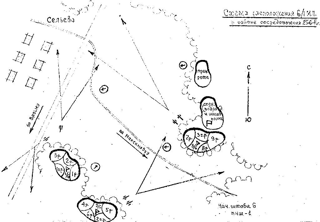 Прибыв на место, командование 6-го мсп расположило личный состав и технику в лесах по дороге на Максимково (10 км восточнее Вязьма) и организовало охранение.