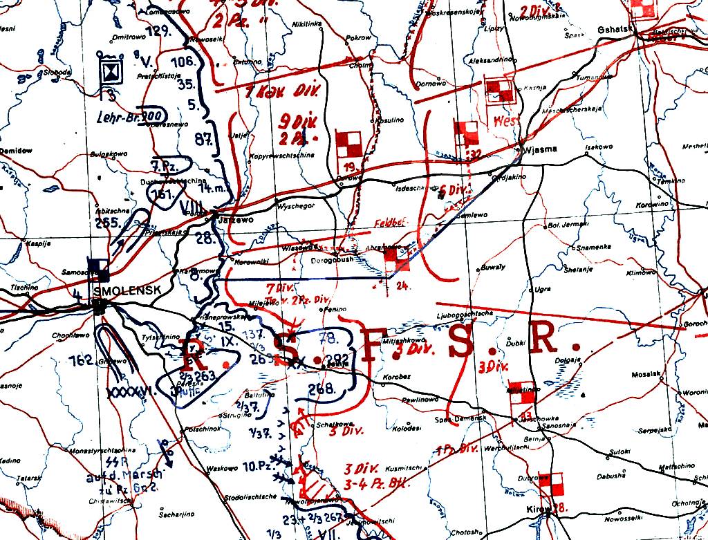 Фрагмент карты положения частей и соединений группы армий «Центр» по состоянию на 31.08.41 г22.