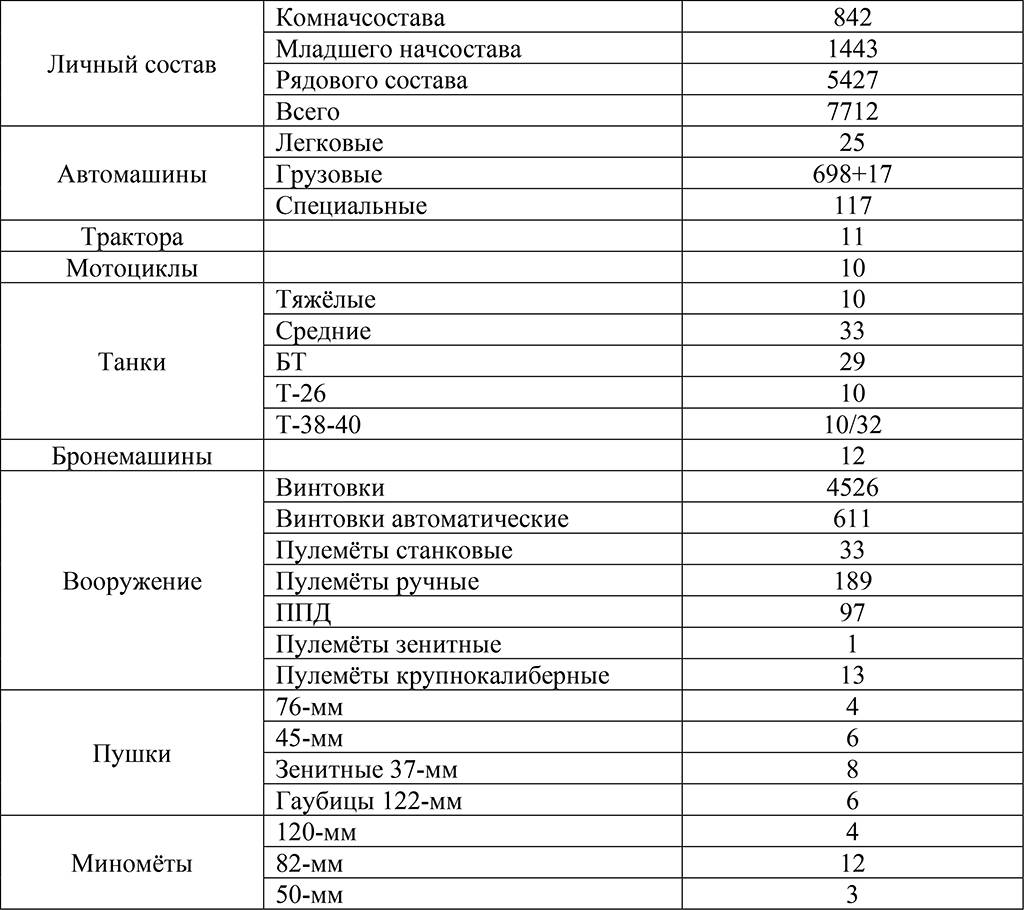 Таким образом на 1-е сентября соотношение сил было следующее: Армия имела: