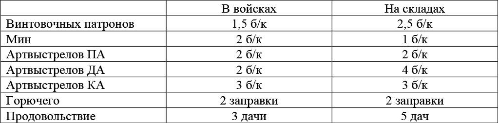 Материальная обеспеченность частей 16-й Армии на 1-е сентября представлялась в следующем виде: