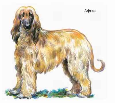 АФГА́Н, порода декоративных собак. Издавна выведена в Афганистане. В Европе известны с 19 в. Очень красивые собаки: стройные, грациозные, с гордо посаженной головой, по обе стороны которой свисают длинные волосы (как бы расчёсаны на прямой пробор). Выс. в холке ок. 70 см. Шерсть длинная, густая, мягкая. Голова клиновидная. Морда длинная. Глаза восточного разреза. Уши длинные, висячие, прилегают к голове. Хвост средней длины, тонкий, кончик загнут в петлю. Окрас палевый, серебристый, голубой, чёрно-подпаловый и др. Разводят в европейских странах, США, Канаде; в России довольно многочисленны.