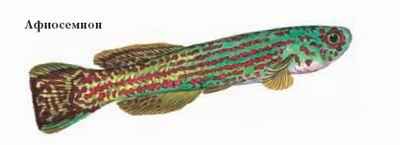 АФИОСЕМИО́НЫ, род рыб отр. карпозубообразных. Объединяет более 90 видов. Тело удлинённое, слегка сжатое с боков. Самцы ярко и пёстро окрашены, крайние лучи их непарных плавников обычно удлинены. Самки невзрачные, зеленовато-коричневые, иногда пятнистые. Распространены афиосемионы в центральной и западной частях тропической Африки, обитают в небольших пресных водоёмах (каналах, лужах, в дуплах деревьев, наполненных водой). В засушливый период при высыхании водоёма рыбы погибают. В следующий сезон дождей из перенёсшей засуху икры выклёвывается крупная молодь, которая через 2—3 мес. достигает зрелости и приступает к нересту. Обитатели постоянных (непересыхающих) водоёмов и более крупные виды достигают половой зрелости в 7—8 мес. Продолжительность жизни 1—2 года. Многие виды содержат в аквариумах.