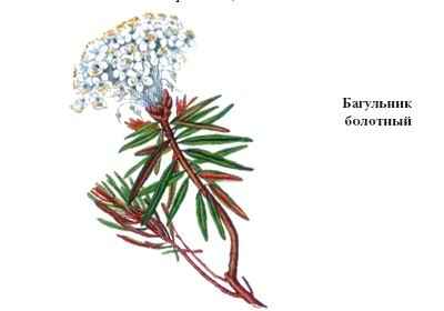 БАГУ́ЛЬНИК, род вечнозелёных кустарников сем. вересковых. Включает ок. 10 видов, произрастающих в холодном и умеренном поясах Северного полушария. В России – 3 вида. Наиболее широко распространён багульник болотный, растущий в европейской части, в Сибири и на Дальнем Востоке. Стебель выс. 50—125 см, листья кожистые, с короткими черешками, линейно-продолговатые. Цветки белые, в зонтиковидных кистях, с одурманивающим запахом. Плод – многосемянная коробочка. Всё растение ядовито. Ввиду произрастания на болотах почти недоступен для животных (кроме пчёл, для которых опасен). Обладает лечебными свойствами (отхаркивающее, потогонное средство).
