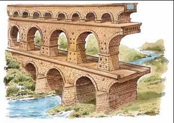 С 4 в. до н. э. сохранилась часть водопроводной системы Древнего Рима, общая длина которой составляла 436 км, из которых 55 км – мостовые сооружения. Некоторые из акведуков, дошедшие до наших дней, поражают воображение. Таков, напр., Пон-дю-Гар неподалёку от французского г. Нима. Возведённый из трёх рядов каменных арок, установленных друг на друга, он перебрасывает воду через 270-метровую долину р. Гардон на высоте 49 м. Существуют и поныне действующие акведуки – напр., акведук близ Сеговии в Испании исправно снабжает город водой начиная с 109 г. н. э. Современные акведуки строятся в основном на оросительных системах и для пропуска воды над другими инженерными сооружениями, напр. над горными автомобильными или железными дорогами.