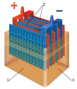 1 – электролит; 2 – электроды; 3 – корпус