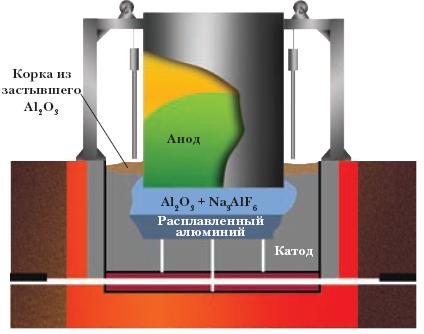 Схема электролизёра для получения металлического алюминия