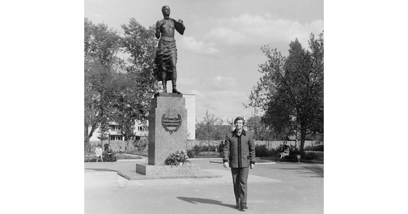 Певец Эдуард Хиль у памятника О. Варенцовой. Иваново, май 1982 г. ГАИО