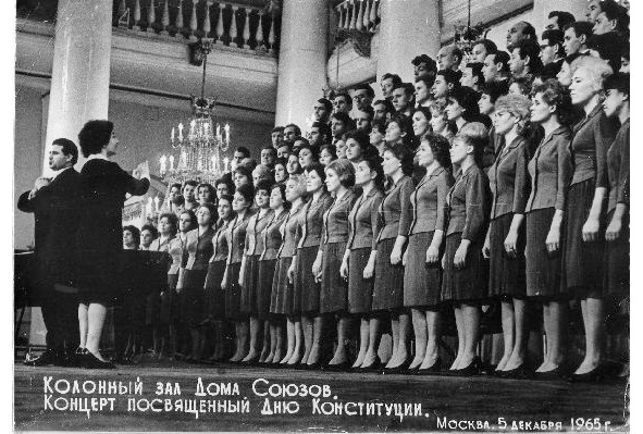 Выступление Ивановского хора текстильщиков п/у Изабеллы Николаевны Ивановой в Колонном зале Дома Союзов в Москве 5 декабря 1965 г. Фото из личного архива Ю. Е. Иванова