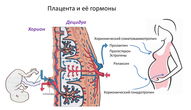 • Перед родами плацента вырабатывает пролактин и релаксин.