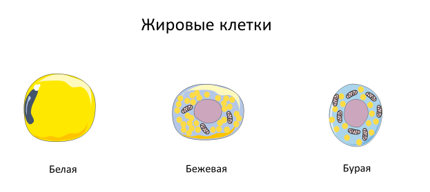 • Белые жировые клетки могут превращаться в бежевые жировые клетки.