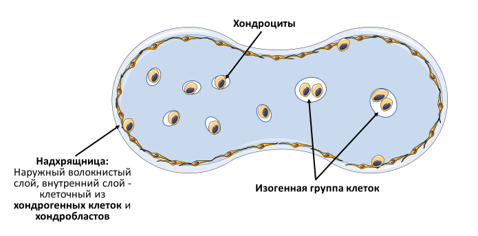 Кровеносные сосуды надхрящницы не проходят вглубь хряща. Все питание хряща осуществляется путем диффузии газов и питательных веществ из сосудов надхрящницы. В костной ткани и костях есть кровеносные сосуды. Прорастание сосудов внутрь хряща приводит к его превращению в кость. Именно это происходит с хрящевыми заготовками наших костей после рождения. Не все хрящи покрыты надхрящницей. Точнее, надхрящницы нет на суставных поверхностях, обращенных в полость суставов. Суставной хрящ спасает от гибели и голодания внутрисуставная синовиальная жидкость.