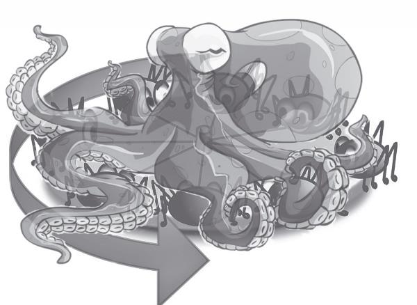 4. Вот теперь, мол, всё в порядке – паучки не будут рассыпаться. Осьминог, то есть тёмная материя, их удерживает.