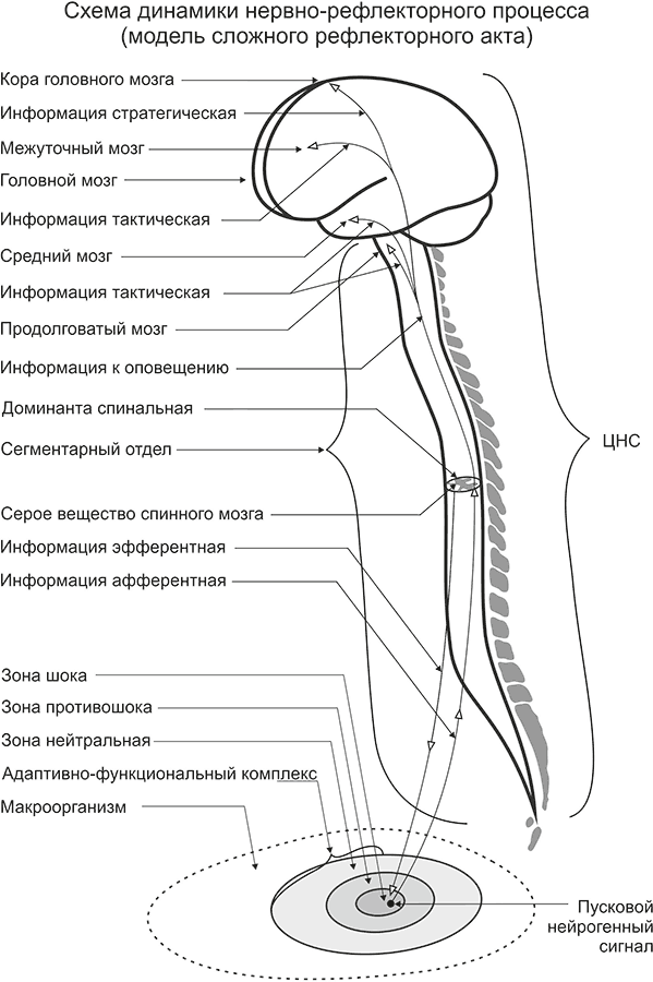 Строение и поведение рефлекторного механизма в ЦНС при адаптивной регуляции кризисных участков в общей физиологической системе организма