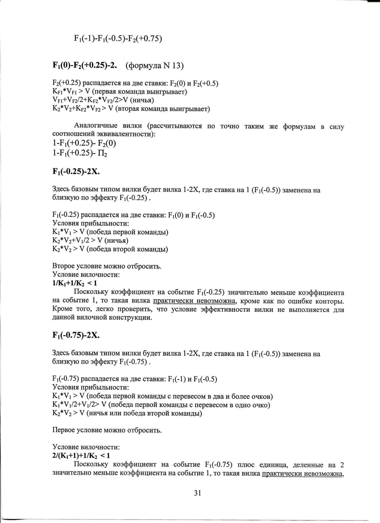 По аналогичной формуле вычисляются условия вилочности вилок с форами, тоталами, индивидуальными тоталами. Например, F1(+1)-F2(-1), или ТМ(2)-ТБ(2).