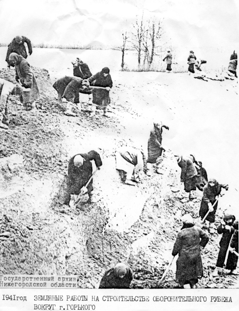 1941 год. Земляные работы на строительстве оборонительного рубежа вокруг г.Горького