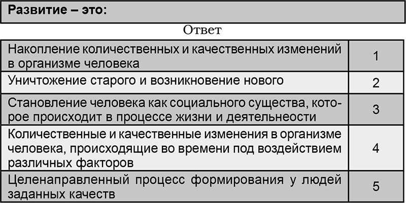 В переводе с латинского «процесс» означает движение вперед, изменение. Развитие – это процесс количественных и качественных изменений в организме. Его результат – физическое, интеллектуальное, социальное, духовное развитие человека. Биологическое в человеке характеризуется физическим развитием, включающим в себя морфологические, биохимические, физиологические изменения. А духовное развитие находит выражение в интеллектуальном, социальном росте.