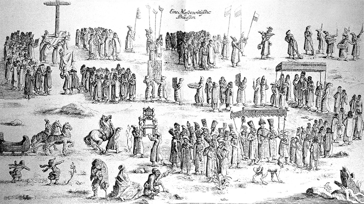 Московитская процессия. Гравюра из книги Адама Олеария «Описание путешествия в Московию и через Московию в Персию и обратно»