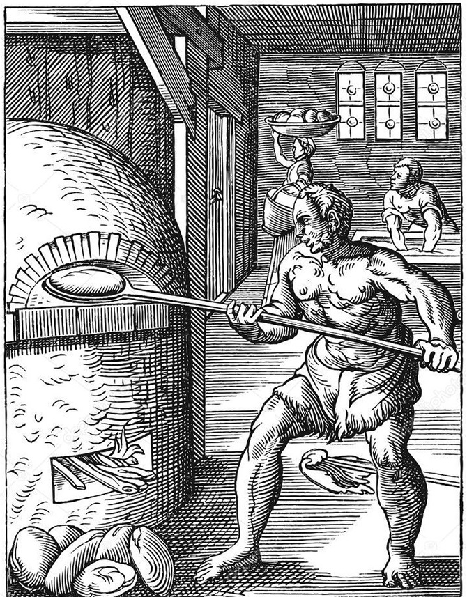 Пекарь. Гравюра Йоста Аммана из книги «Stände und Handwerker mit Versen von Han Sachs». 1568