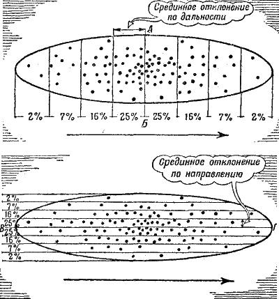 По срединному отклонению вы можете, таким образом, судить о величине рассеивания, о кучности боя орудия.