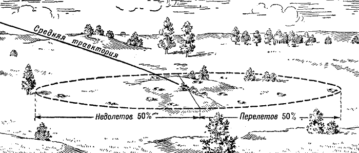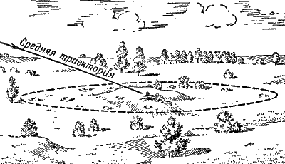 На рисунке 206 показан как раз такой случайный недолет, когда средняя траектория-перелетная, то-есть проходит за целью.