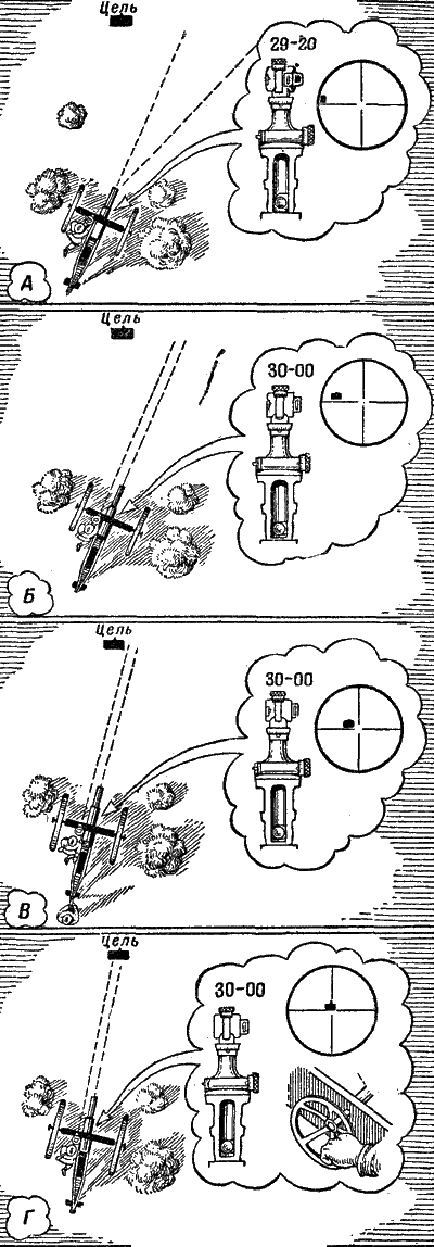 Рис. 223. Как «отмечают» наведенное орудие и восстанавливают сбитую наводку