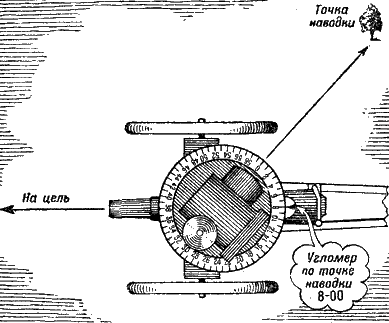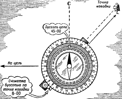 Рис. 247. Как направить орудие в цепь по буссоли: отметка буссолью