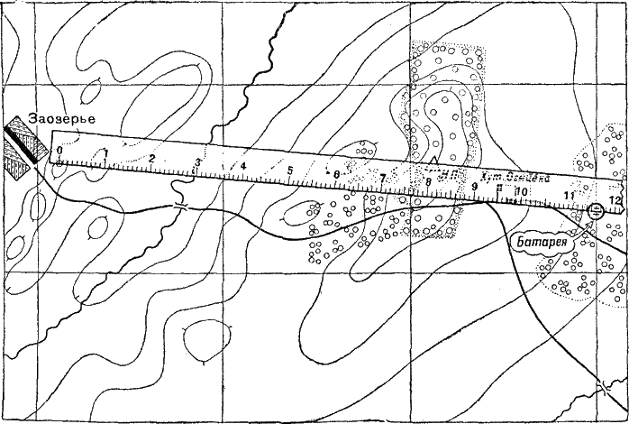 Рис. 257. Так определяют по карте буссоль цели