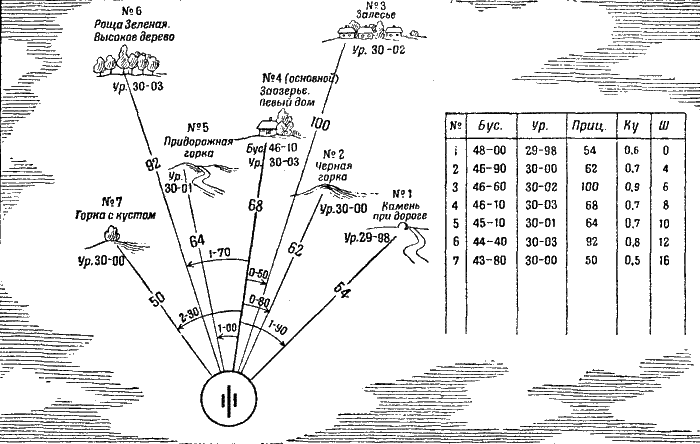 Для этого он подготовил данные по ориентирам и записал их.