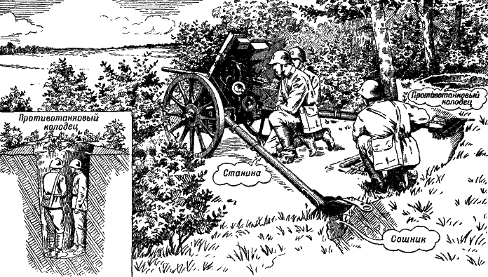 Рис. 281. Как происходил бой противотанковой пушки с атакующими танками противника
