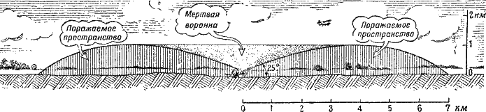 Рис. 288. «Мертвая воронка» и «мертвый сектор» при стрельбе из 76-миллиметровой пушки образца 1902 года с зенитного станка и с земли