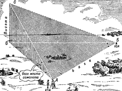 Рис. 291. Так с помощью двух УЗА определяют высоту самолета
