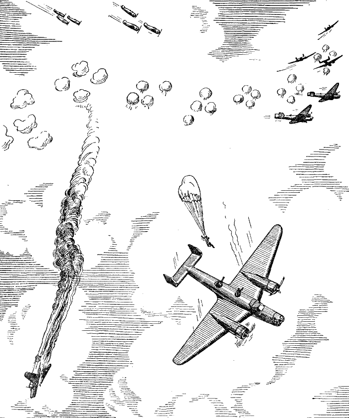 Казалось, что они находятся так близко к самолетам, что можно ожидать уже немедленного падения врага. Но дымки разрывов скоро остались позади, а самолеты противника продолжали двигаться в прежнем порядке.