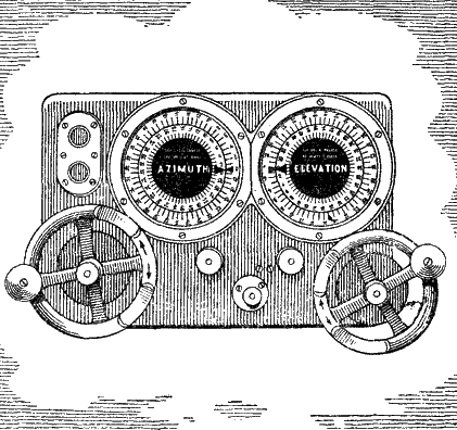 Имеется две большие шкалы и два маховика. По показаниям на шкалах, полученным от корректора, командир в любой момент узнает, куда надо направить прожектор, чтобы его осветил самолет.