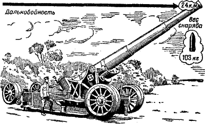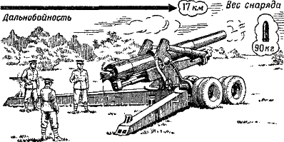 Корпусная артиллерия. Основное ее назначение – борьба с артиллерией противника, с дальними целями в глубине его оборонительной полосы и с прочными оборонительными сооружениями. Эти задачи требуют очень дальнобойных пушек и очень мощных гаубиц.