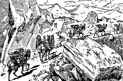 В горной артиллерии широко применяется перевозка орудий в разобранном виде. Горные орудия навьючиваются на лошадей или мулов (рис. 333).