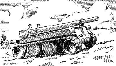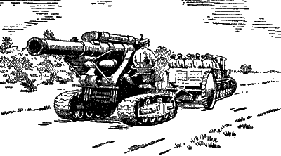 Чтобы мощные и тяжелые орудия не завязли на немощеных дорогах, их в последнее время стали иногда ставить не на колеса, а на гусеницы (рис. 335).