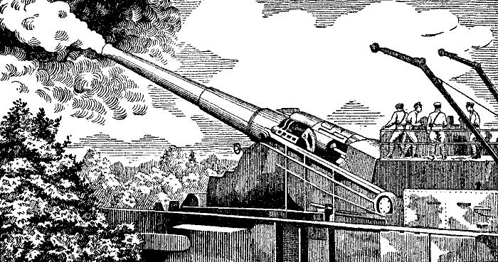 Рис. 339. 355-миллиметровая американская пушка на железнодорожной установке