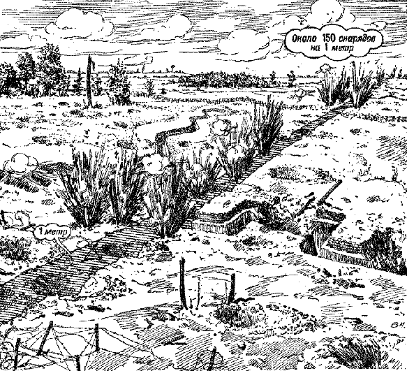 Рис. 343. На каждый метр фронта упало в среднем полторы сотни снарядов