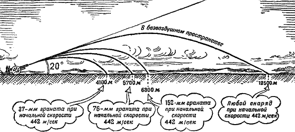 Но главное заключается в том, что сопротивление воздуха все же резко сокращает дальность полета снаряда.