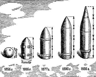 Так на деле и поступают: на смену шаровым снарядам пришли продолговатые; и эти продолговатые снаряды делаются, по мере своего совершенствования, все длиннее и длиннее.
