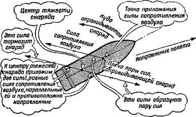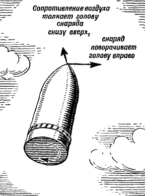 Нечто подобное испытывает и снаряд в полете: не безразлично, как он будет пробираться между частицами воздуха.