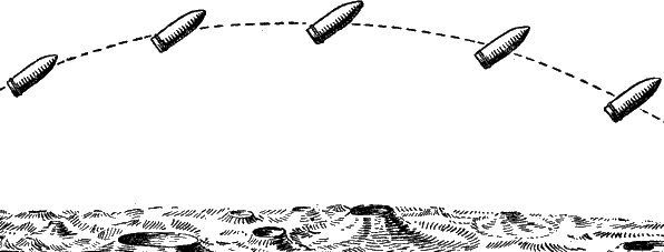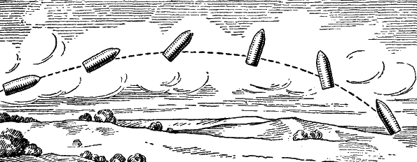 Кувыркающийся снаряд подставляет воздуху то один бок, то другой, то дно; он быстро теряет скорость и падает на землю.