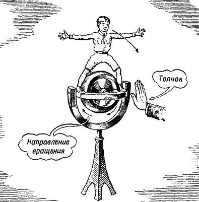 Не тут-то было: на самом деле гироскоп начнет поворачиваться вокруг горизонтальной оси так, что фигура упадет с него.
