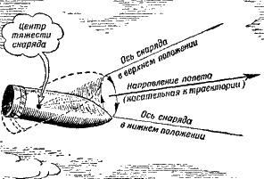 Рис. 125. Так летит в воздухе «послушный» вращающийся снаряд