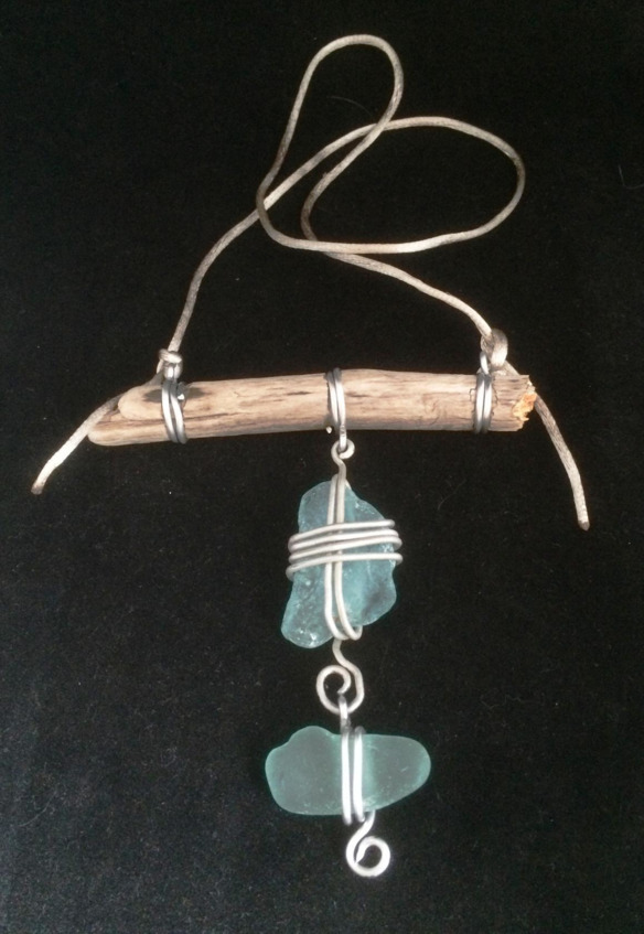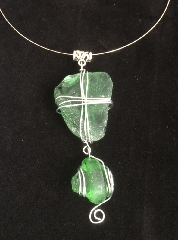 Подвеска из бутылочных стекол, отшлифованных морской волной.