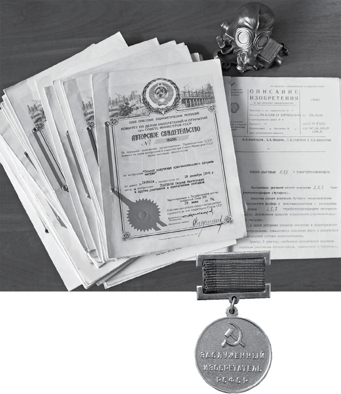 У Сергея было 123 патента, начиная от способа получения кристаллического хлорофоса, проволоки для сварки серебра и хлорсульфирования полиэтилена и заканчивая «способом борьбы с полостным оводом овец». Он получал патенты не только на заводе, но и когда работал в обкоме и в министерстве, потому что постоянно испытывал потребность придумывать интересные решения проблем и изобретать что-то новое. На оформление своих идей он не хотел тратить время, поэтому патенты появлялись только тогда, когда находились коллеги, готовые заняться бумажной работой.