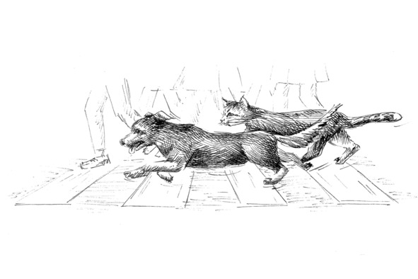 Просунув свой влажный чёрный нос через щель слегка приоткрывшейся от сквозняка двери, Кузя глубоко вдохнул наружный воздух и затем с облегчением выдохнул, убедившись, что за ней никого нет. Встав на задние лапки, он легко толкнул дверь передними, та широко распахнулась…