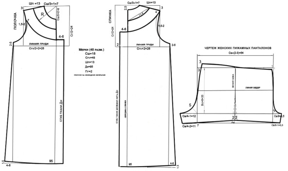 Построение ведется по единой схеме, а формы и силуэты создаются за счет различных прибавок на свободное облегание и оформление конструктивных линий. Независимо от степени прилегания внутренние размеры изделия всегда больше соответствующих размеров тела. Разница между размерами тела человека и внутренними размерами изделий называется прибавкой на свободное облегание.