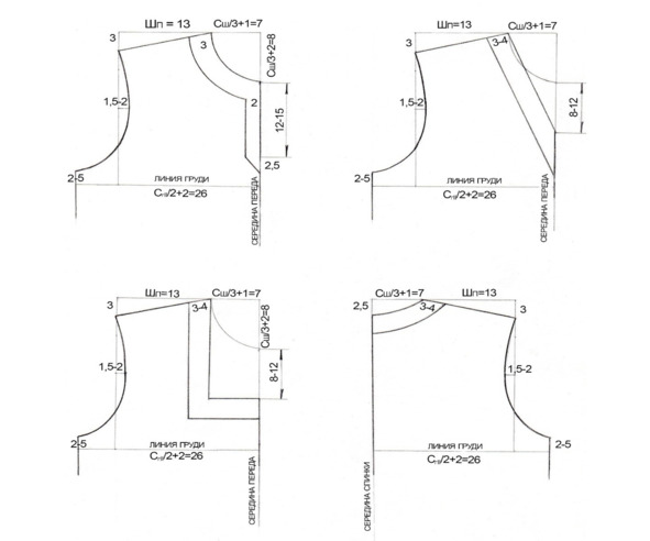 Для сутулых фигур в ростке по среднему шву спинки делается вытачка, раствор которой равен 0,5 см. Она обеспечивает правильное прилегание изделия к фигуре.