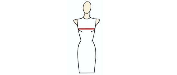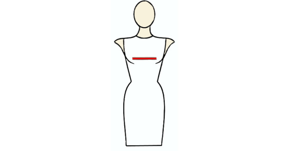 Мерка снимается по спине горизонтально по нижним углам лопаток, касаясь подмышечных впадин, а спереди лента проходит по выступающим точкам грудных желез.